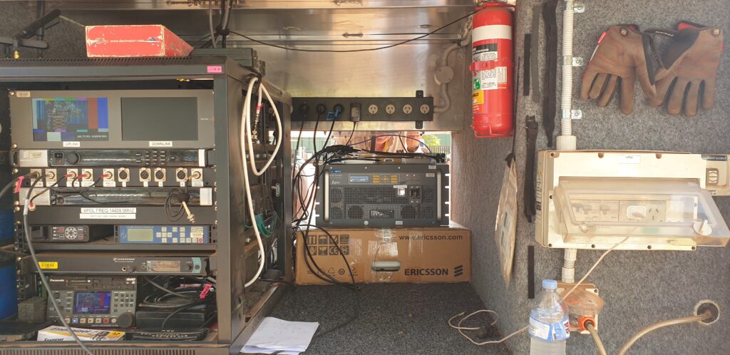 Setup the HPA and Modulator and connected to antenna. After a number of calls to Sydney and to Optus, and lots of fault finding finally got it sorted and working. A quick pack up and make sure Dean is happy with changes, then back in car to airport again.