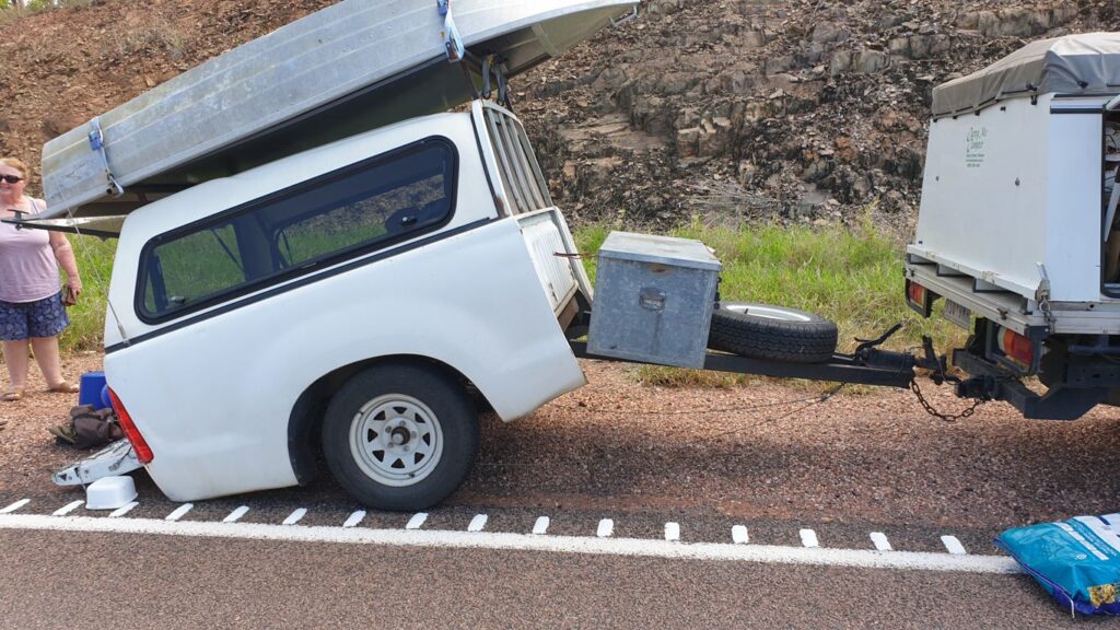 The A-frame broke on their trailer. So I gave them a lift to make a call for help.