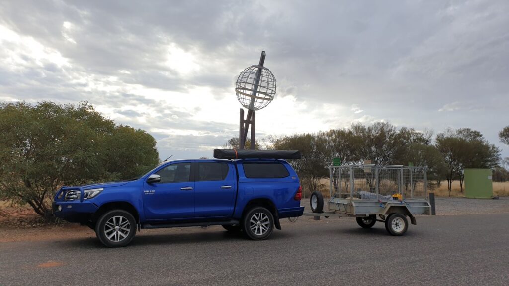 A stop at the tropic of Capricorn, to put my dinner in the warmer. Shepherds pie tonight, then into Alice for fuel.
