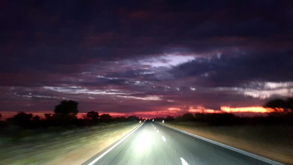 Sunset leaving Alice Springs